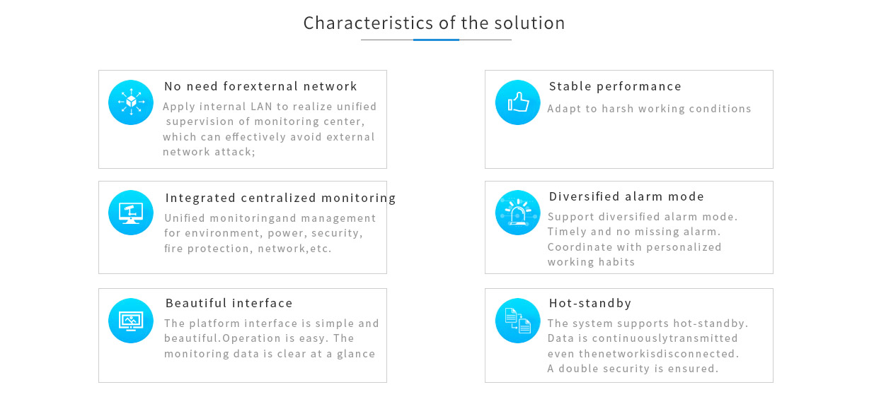 Unified monitoringand management for environment, power, security, fire protection, network,etc.